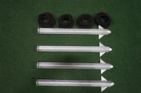 Heavy Duty Ground Stakes for any and all batting cages. Comes with rope to tie to both the ground stake and the top of the batting cage frame. We recommend at least 4 ground stakes with a cage 50' or less. For cages above 50', we recommend at least 6 stakes. Comes with rope to tie around the batting cage.