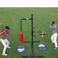 The Institutional Power Zone is a complete training station that targets accuracy and mechanics on one side and explosive power training on the other. The unit has wheels on one end and handles on the other for easy mobility. Keep your team busy by getting in quality work with this multi-station training center. The benefits of this product are two-fold; on one side one hitter can work on increasing his strength and power with the Power Bag while another hitter can work on his swing mechanics with the Zone Hitter on the other side. This is the perfect dual hitting station for players who want to increase power and swing efficiency!!